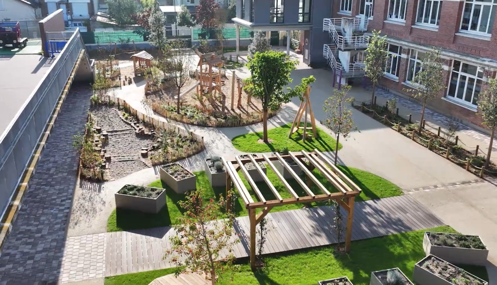 Plongez dans l’univers des cours Oasis, ces nouveaux espaces extérieurs réinventés pour répondre aux défis climatiques et améliorer la qualité de vie à l’école.